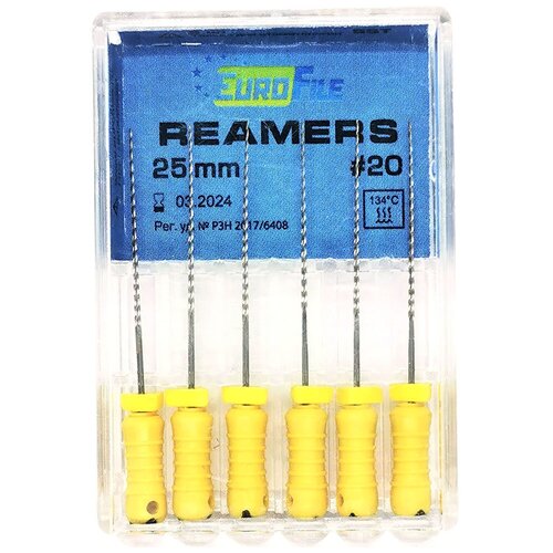 Reamers - стальные ручные дрильборы (каналорасширители), 25 мм, N 20, 6 шт/упак