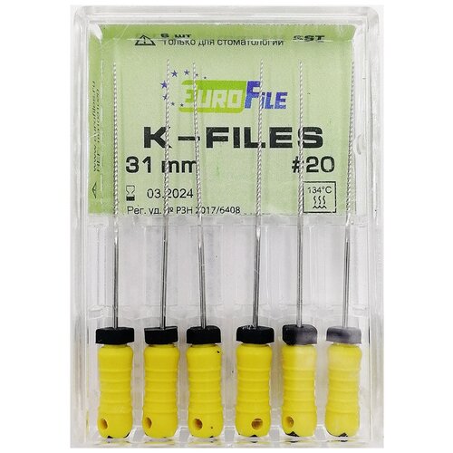 K-Files - ручные стальные файлы, 31 мм, N 20, 6 шт/упак