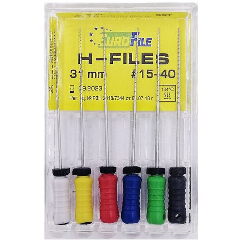 H-Files - ручные стальные файлы, 31 мм, N 15-40, 6 шт/упак