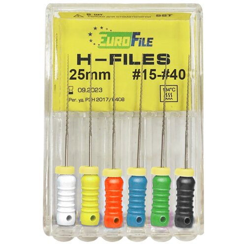 H-Files - ручные стальные файлы, 25 мм, N 15-40, 6 шт/упак