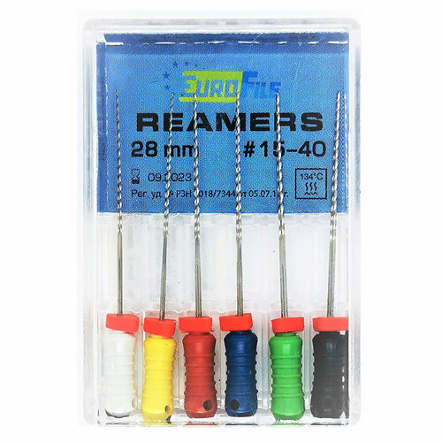 Reamers - стальные ручные дрильборы (каналорасширители), 28 мм, N 15-40, 6 шт/упак