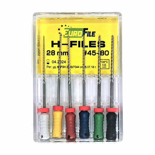 H-Files - ручные стальные файлы, 28 мм, N 45-80, 6 шт/упак