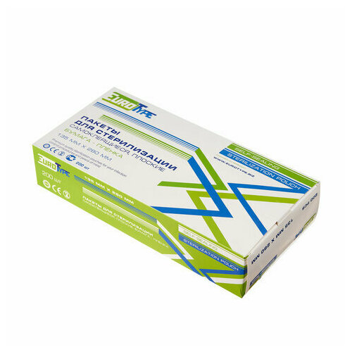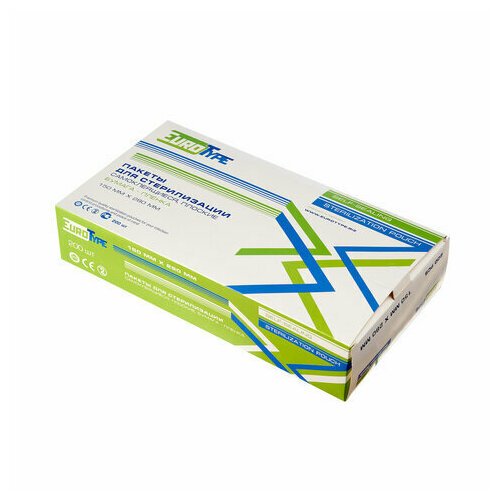 Пакет комбинированный самоклеящийся 190х360 мм EUROTYPE 200 шт, для паровой/газовой стерилизации
