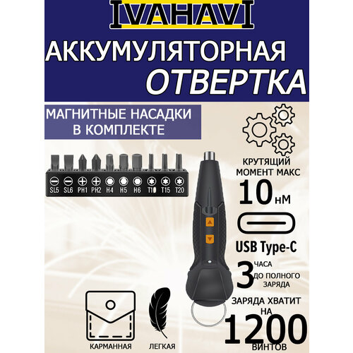 Аккумуляторная отвертка IVAHAVI 900 mAh 12 насадок