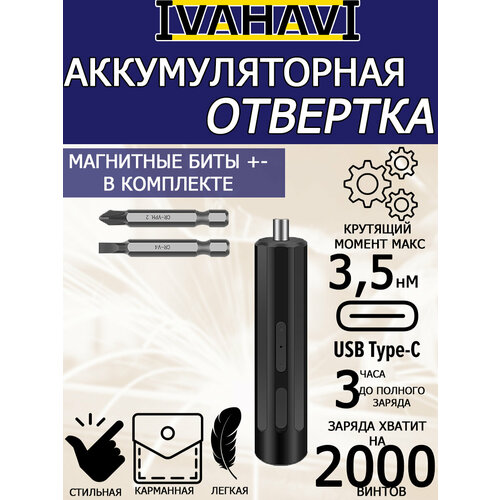 Аккумуляторная отвертка IVAHAVI 2000 mAh 2 насадки