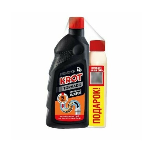 Набор чистящих средств: KROT TORNADO Гель для сложных засоров 1000г + Nega Жидкий порошок 250г