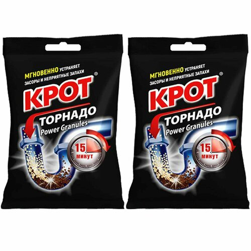 Набор крот Торнадо Средство для прочистки труб и засоров гранулированный пакет 90г 2шт