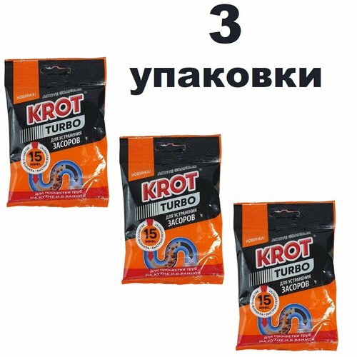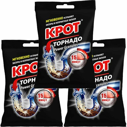 Гранулы для труб Крот Турбо, 90 гр. (3 упаковки) / Средство от засоров труб