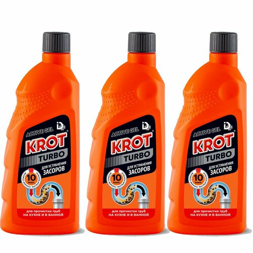Набор крот TURBO Гель для устранения засоров и прочистки труб 1000г 3шт