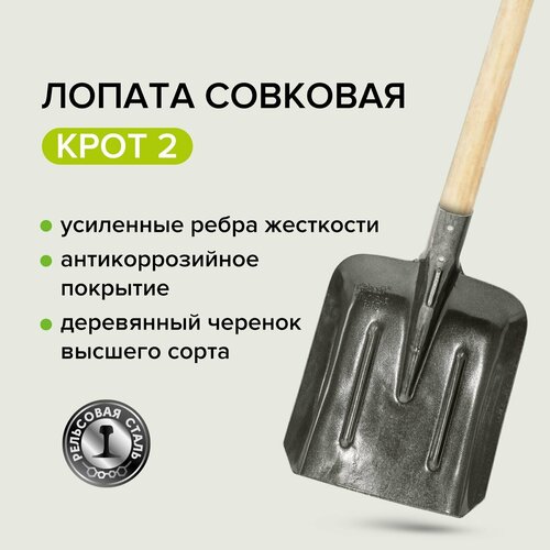 Лопата совковая с деревянным черенком, рельсовая сталь, крот
