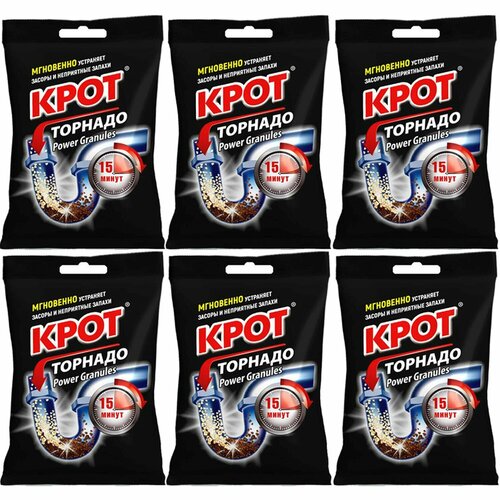 Набор крот Торнадо Средство для прочистки труб и засоров гранулированный пакет 90г 6шт