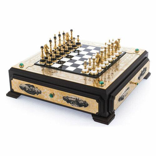 Шахматы из белого мрамора и долерита "Баталия" Златоуст