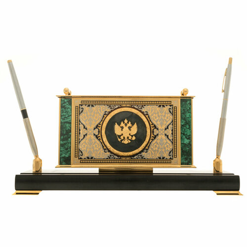 Настольный набор из малахита "Герб РФ"