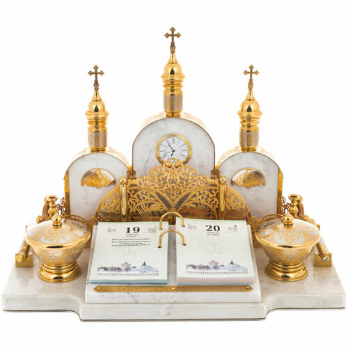 Настольный набор руководителя из белого мрамора "Собор"