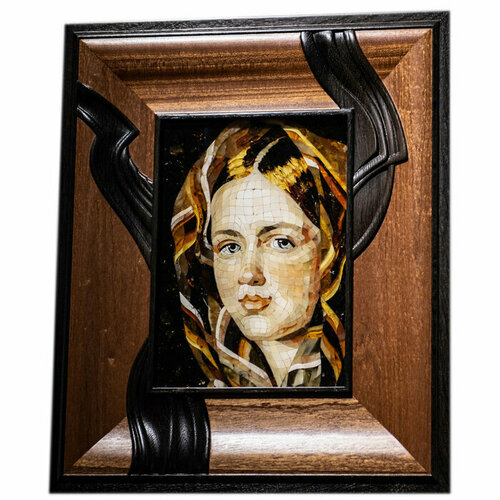 Панно из дерева и янтаря Алексей Гаврилович Венецианов "Девушка в клетчатом платке"
