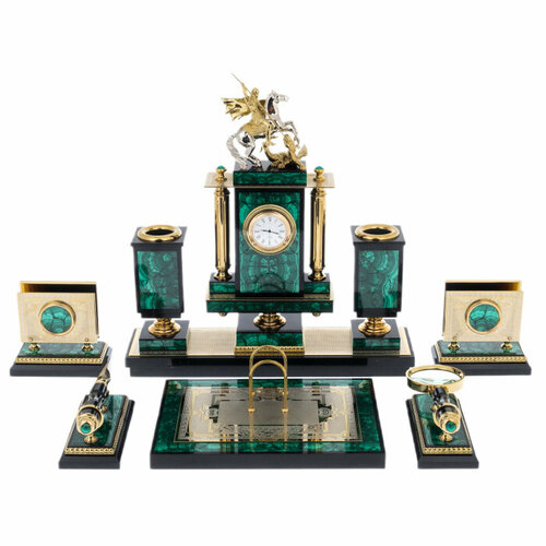 Письменный набор из малахита "Георгий Победоносец"