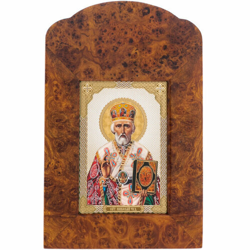 Икона "Николай Чудотворец" из капа березы