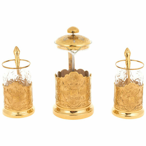 Чайный набор на 2 персоны "Герб РФ" с френч прессом, Златоуст