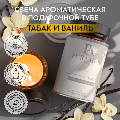 Свеча ароматическая PURAMUR в подарочной тубе 200мл Табак и ваниль