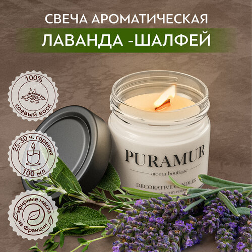Ароматическая свеча PURAMUR Лаванда-Шалфей 100 мл