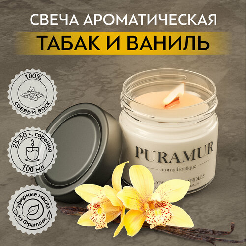 Ароматическая свеча PURAMUR Табак ваниль, 100 мл