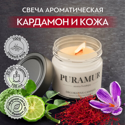 Ароматическая свеча PURAMUR Кардамон и кожа, 100 мл