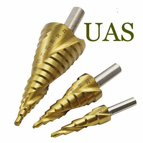 Набор ступенчатых сверл спиральный UAS 3-12, 4-12, 4-20 мм, 3 шт