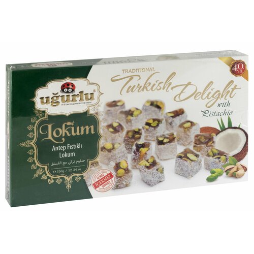 UGURLU Рахат лукум 350 гр с фисташками в кокосе (ANTEP FISTIKLI LOKUM HINDISTAN CEVIZLI 1/12)
