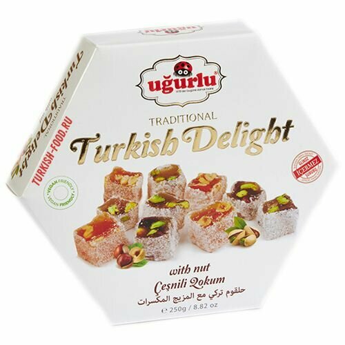 UGURLU Рахат лукум 250 гр с фундуком (шестигранник - ALTIGEN FINDIKLI LOKUM 1/12)