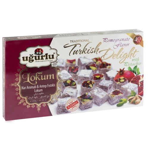 UGURLU Рахат лукум 350 гр с фисташками и с ароматом граната (NAR AROMALI & ANTEP FISTIKLI LOKUM 1/12)