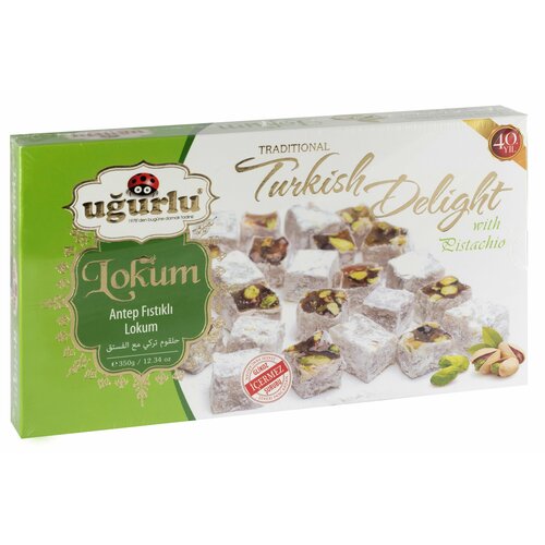 UGURLU Рахат лукум 350 гр с фисташками в сахарной пудре (ANTEP FISTIKLI LOKUM PUDRA SEKERLI 1/12)