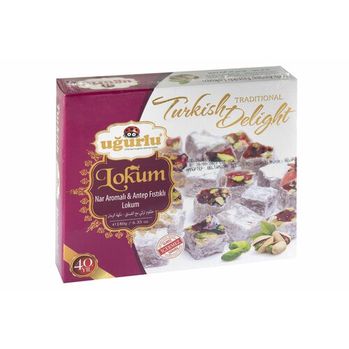 UGURLU Рахат лукум 180 гр с фисташками и с ароматом граната (NAR AROMALI & ANTEP FISTIKLI LOKUM 1/20)