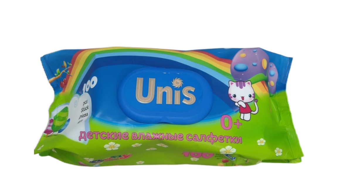 Влажные салфетки UNIS для детей без запаха 100 штук в упаковке (9 упаковок в коробке)