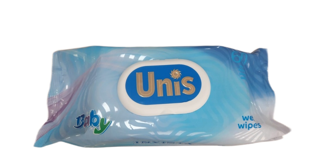 Влажные салфетки UNIS для детей без запаха 60 штук в упаковке (14 упаковок в коробке)