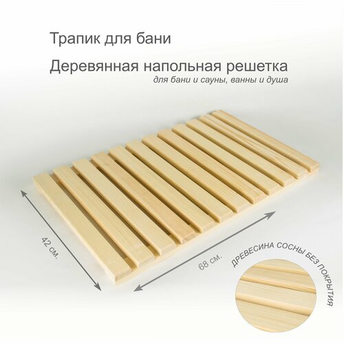 Трапик для ванны деревянный, решётка напольная с покрытием 68 х 42 см. URAL BIRCH