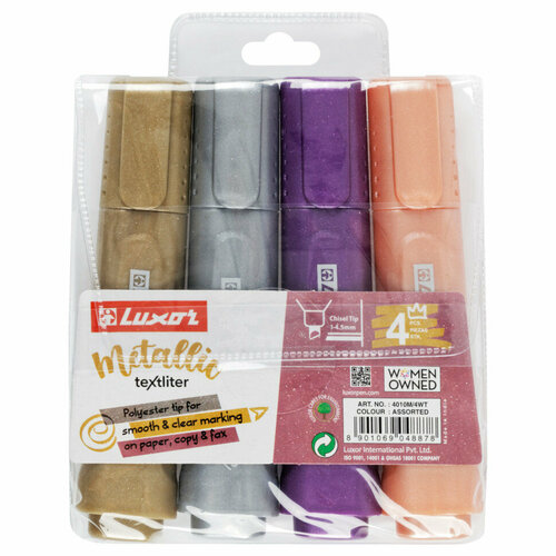 Набор текстовыделителей Luxor "Textliter Metallic" 04 цвета, 1-5мм, чехол с европодвесом, 353206