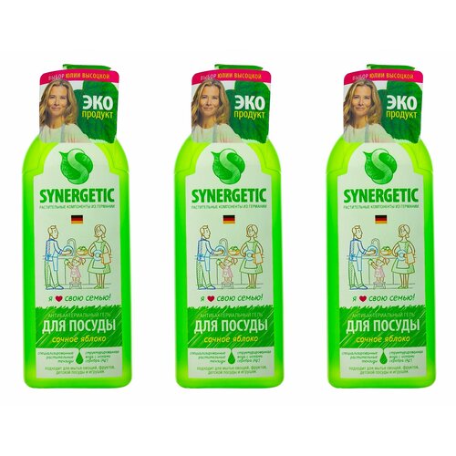 Synergetic Средство для ручного мытья посуды с ароматом яблока, 1 л, 3 шт