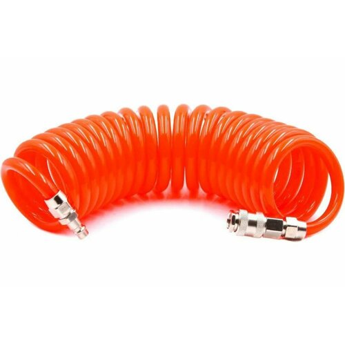 Шланг пневматический полиуретановый спиральный (15 м, 8х12 мм, быстросъем Rapid M+F сталь, 10-16 бар, красный) HQ-mech HQ-AH05-1512RED УТ000002491