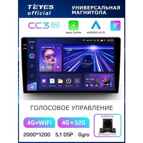 Магнитола Teyes CC3 2K 4/32GB Тиайс Универсальная 9 дюймов, 8-ми ядерный процессор, QLED экран, 2 DSP, 4G, Wi-Fi, 2 DIN 103698655432