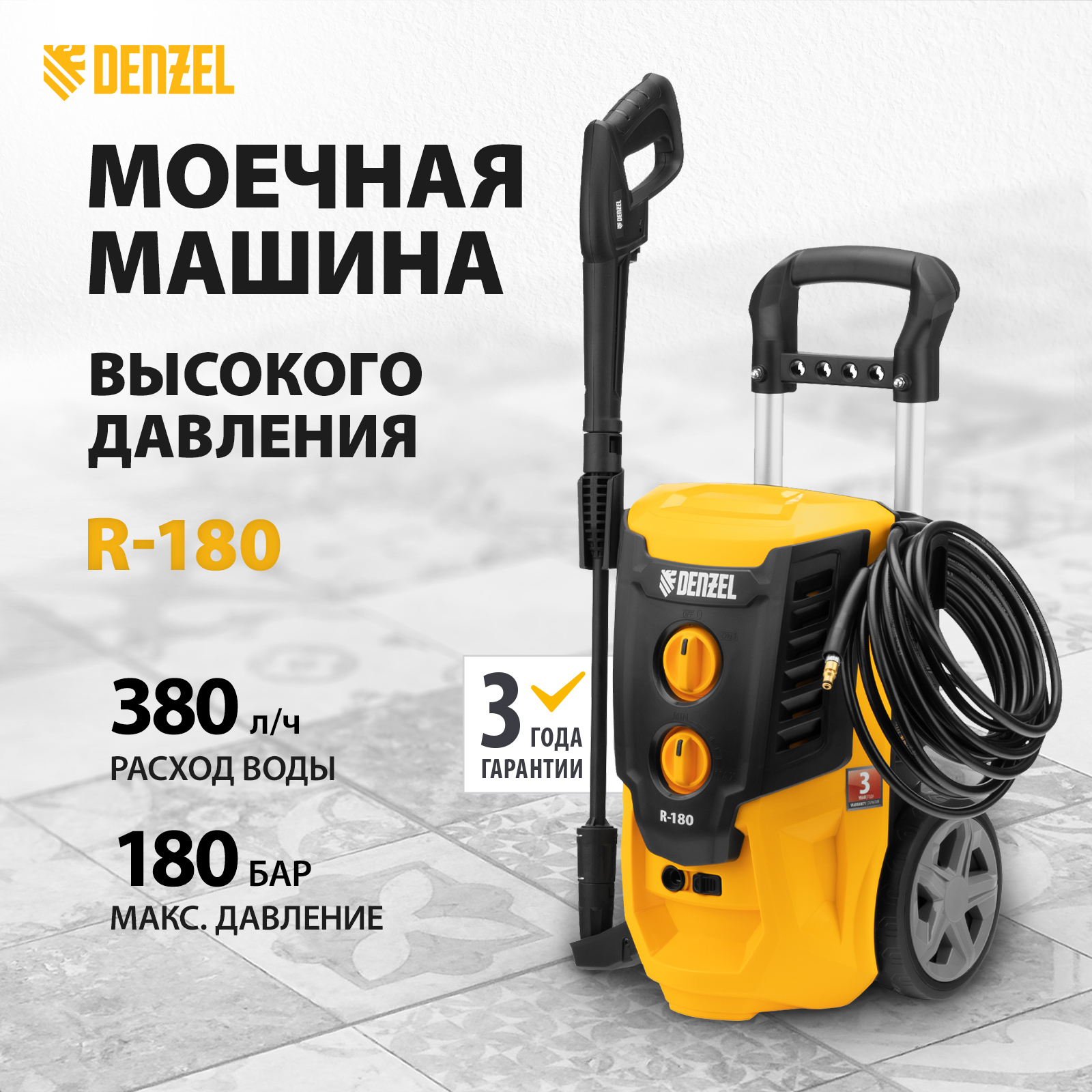 Моечная машина высокого давления Denzel R-180, 2200 Вт, 180 бар, 380 л/ч арт. 58238