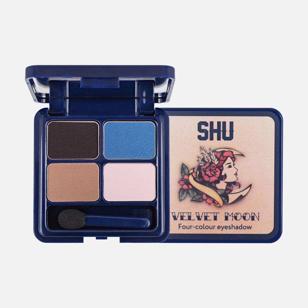 Тени для век SHU четырехцветные Velvet Moon тон 155 красный нюд
