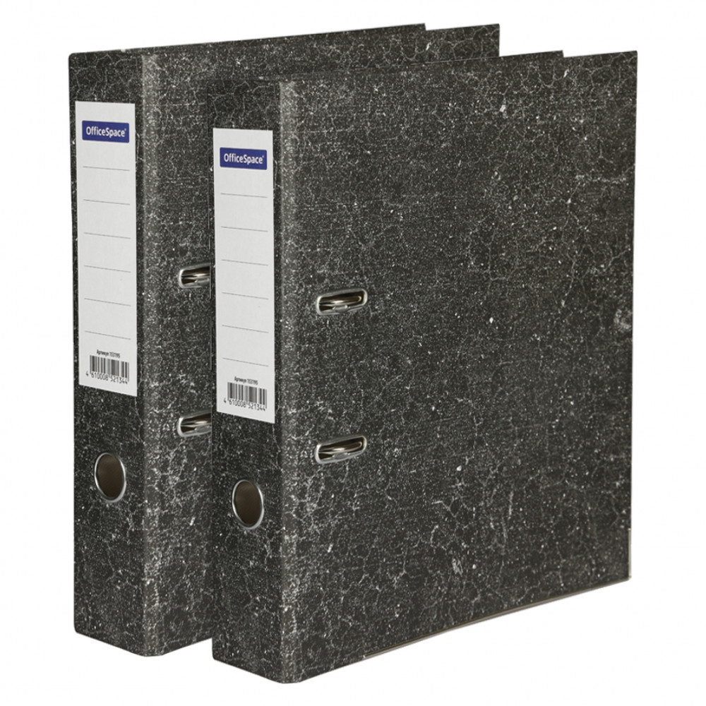 Папка-регистратор OfficeSpace 70мм, мрамор, черная, нижний метал. кант, 2 шт 100056373709