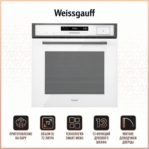 серебристыйНовое поколение духовых шкафов от Weissgauff предлагает духовой шкаф, выполненный в великолепном дизайне в нержавеющей стали, имеющий современный дисплей с белой подсветкой и расширенной индикацией. Тройное остекление дверцы отражает всю ту предусмотрительность, с которой мы подошли к её созданию. Управление, реализованное сочетанием чувствительного сенсорного блока и утапливаемых рукояток PIPO, дополняет богатый функционал, представленный сразу 9 режимами! А возможность гидролизной очистки сделает уход за духовым шкафом еще проще и удобнее! Благодаря всему этому вы сможете полностью управлять процессом приготовления пищи, добиваясь идеального результата каждый раз!Объем XL 70 литров дает вам полную уверенность в том, что приобретая этот духовой шкаф, вы сможете разместить в нем сразу весь необходимый объем пищи, и даже профессионально работать на нескольких уровнях одновременно, порадовав себя и своих близких настоящим пиром, приготовленным в духовом шкафу Weissgauff на действительно ресторанном уровне.