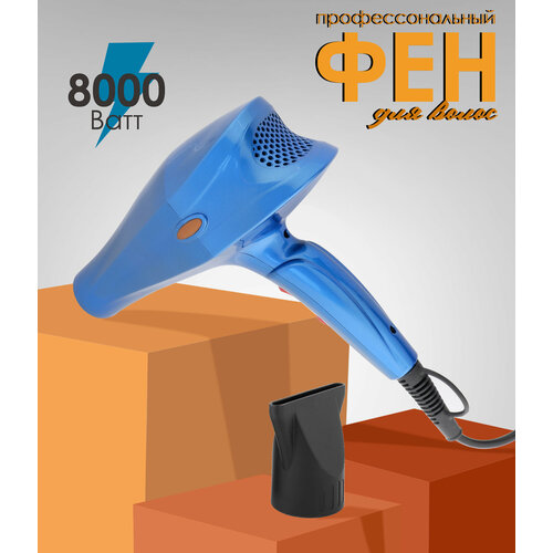 Фен профессиональный , синий, анти-статик, 4 режима, 2 скорости, быстрая сушка волос
