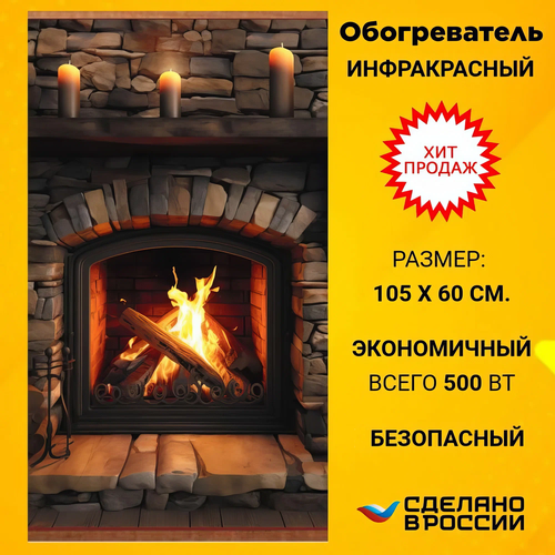 Электрический доброе тепло обогреватель гибкий настенный инфракрасный, рисунок Старый камин, 500Вт