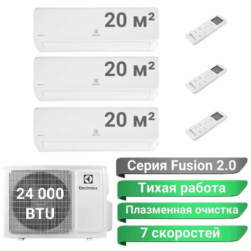 белыйИнверторная мульти сплит-система ELECTROLUX FUSION 2.0 на 3 комнаты (20м2 + 20м2 + 25м2).
