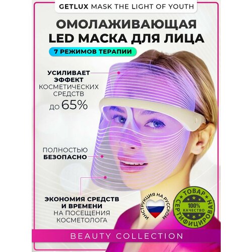 Маска LED GETLUX "The Light of Youth", LED-терапия, омоложение, 7 цветов, Россия