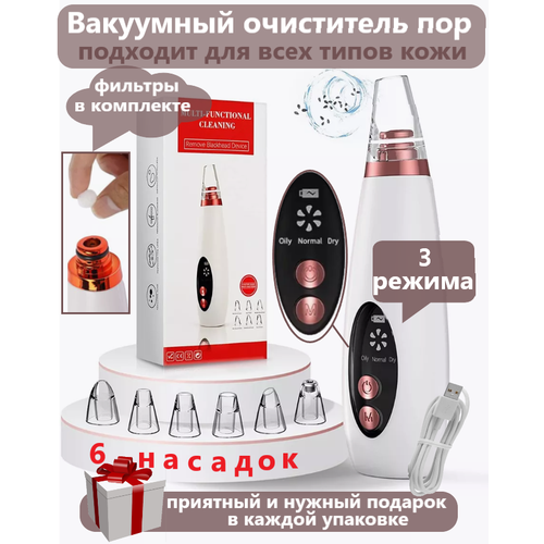 Косметический аппарат для вакуумной чистки лица / LED-дисплей/ 6 насадок