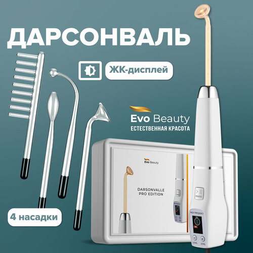 Аппарат дарсонваль для волос, для лица и для тела Evo Beauty. Профессиональный уход за лицом в домашних условиях, омоложение лица, 4 насадки