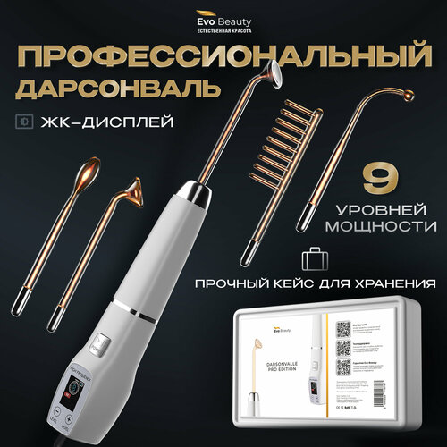 Медицинский дарсонваль Evo Beauty с ЖК дисплеем. 9 уровней мощности. Уход за кожей в домашних условиях. 4 насадки